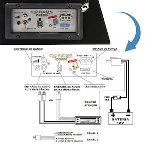 - Entrada de Áudio de baixa impedância via fio e alta impedância RCA;