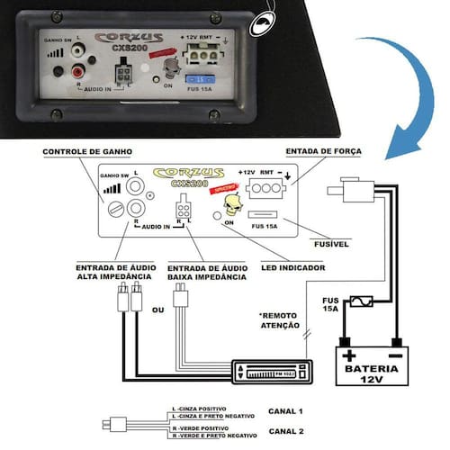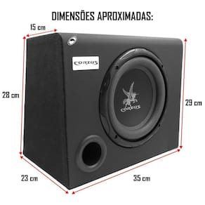 A CORZUS CXS 200 8 Universal é uma caixa amplificada de subgrave com potência total de 200 Watts RMS com amplificador digital de altíssima eficiência e baixo consumo, qualidade de áudio, resposta senoidal de 20Hz a 110Hz, filtro subsônico, proteção eletrônica e entrada de áudio com opção RCA ou via fio. por ser uma caixa compacta é ideal para usuários que não querem ocupar espaço no porta-malas.