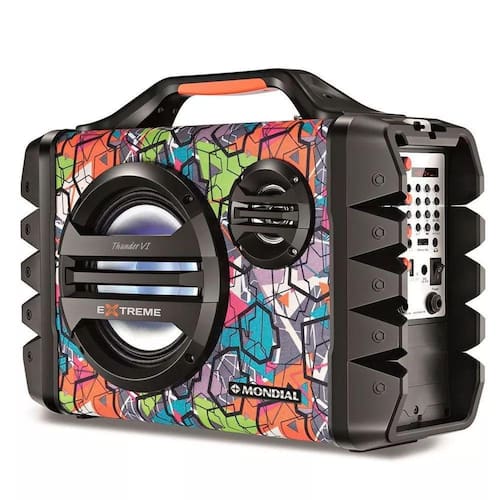 A Caixa Multi Connect Thunder VI Extreme possui uma bateria bivolt interna recarregável com autonomia prolongada.