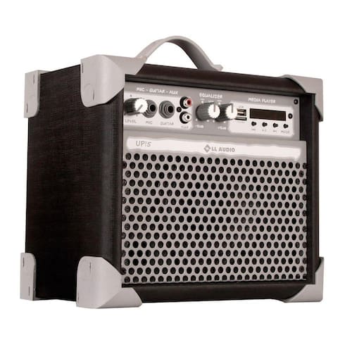 Esta caixa multiuso ll audio amplifica, mixa, e reproduz sinais de áudio e voz. permite a ligação de microfone, aparelhos de reprodução de áudio como dvd, cd, tv, videokês, etc. Possui entrada usb para utilização de pendrives com músicas em arquivo mp3 ou wma e de sd card. Tecnologia bluetooth, conecte seu celular diretamente na caixa e escute suas músicas preferidas. Potência de 35 w rms com falante de 5 polegadas Fm com antena fio 1 canal com 2 conectores p10 sendo 1 para microfone e o outro para guitarra elétrica ou acústica, violão ou viola elétrica mais uma entrada auxliar com conector rca. Altura dela é de 24 cm por 27 cm de largura e 18 cm de profundidade com um peso de 3,5 kg. Alimentação: 127/220 V com chaveamento manual