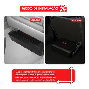 CARACTERÍSTICAS: - Ideal para espaços reduzidos: Com design slim e subwoofer de 6x8 polegadas, o Nakamichi NBF618S é perfeito para veículos com pouco espaço disponível, sem comprometer a qualidade do som; - Graves potentes e definidos: Com 100W RMS e 1000W de PMPO, entrega graves impactantes e profundos, melhorando significativamente a experiência sonora; - Ajustes de áudio sob medida: Conta com filtro passa-baixa ajustável e reforço de graves, oferecendo controle total sobre o som.
