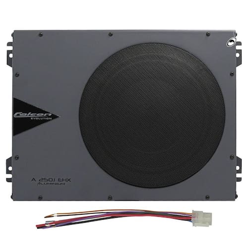 A Caixa Amplificada Slim 8 Polegadas Automotiva Falcon A 250.1 possui entradas em RCA e a fio, oferecendo versatilidade na conexão com outros dispositivos de áudio. Seu perfil compacto em alumínio permite uma instalação fácil e discreta, ocupando pouco espaço no veículo.