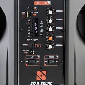Caixa Ativa 10 Staner Com Bateria Ss100 35W Bt/Fm/Sd/UsbStar Sound - Caixa Ativa 10StanerEmpresa especializada no desenvolvimento de produtos para áudio e projetos de sonorização.Primeira no Brasil a disponibilizar uma completa linha de caixas acústicas no conceito Line Array (coluna única de caixas), sistemas profissionais que se tornaram tendência na área.Antecipou para o mercado, soluções práticas às necessidades de usuários, lançando sistemas profissionais ativos de caixas acústicas com amplificadores embarcadosContamos com profissionais altamente capacitados para idealizarem soluções em áudio sintonizadas com o que há de mais moderno em tecnologia. Dessa forma, conseguimos colocar em prática nossa filosofia que é a de oferecer sempre o melhor resultado em sonorizações.Especificações:Alto-falante de 10 + 01 TweeterFuncionamento por bateria de íon-LítioAutonomia de até 5 horas de uso continuoEntrada para microfone com conector P10Controle de volume do microfoneEfeito de eco com controle intermitenteAcompanha um microfone com fioEntrada de linha com conector P2Acompanha cabo P2 X P2Alça telescópicaAlça laterais e superior moldadas no gabineteRodísio traseiroAcompanha carregador de bateriaEncaixe para pedestalReceptor de FmComunicação via BluetoothControle de volume geralEntradas Usb/Sd Card para reprodução de arquivos MP3Função de gravação direto no USBDisplay multi-função digitalLed Rgb frontal com múltiplos efeitos com chave liga desligaDimensões L x A x P: 290 x 450 x 252 mmPeso: 3,80Kg 35 Watts
