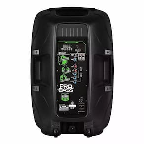 CaracterísticasA Pro Bass Elevate 115 é uma caixa ativa ideal para sonorização de eventos, palestras, DJ's, músicos, comícios ou qual mais aplicação for necessária. Tem player digital com entrada para USB e SD card, Bluetooth para conectar sem fio seu Smartphone, entrada para microfone ou instrumento musical e controle remoto.É possível ligar um microfone e um instrumento musical com controles de volumes separados, além de possuir efeito eco (apenas para microfone) e função microfone priority também conhecida como talk over, que quando ativada, reduz automaticamente o volume do restante do sistema dando prioridade ao microfone.O sistema é composto por uma caixa com Woofer de 15 polegadas, 800W, bluetooth, USB, mp3 e entrada de linha RCA. Itens da Caixa1 (uma) Caixa Ativa1 (um) Controle RemotoEspecificações técnicasAlimentação: 110V- 220V (bivolt chaveado)Consumo de Energia: N/IDimensões Aproximadas da Caixa (AxLxC): 76.6x48.26x40.64Driver: 1 polegada (titânio)Entrada: 1 para Microfone ( XLR&1/4 Jack), 1 RCA/XLRFunções: USB, SD, MP3, BluetoothGarantia: 3 Meses do fabricante, para defeitos de fabricaçãoImpedância: 4 OhmsInformações adicionais: Controle de Volume, Amplificador Classe - ABPeso do Produto + Caixa: 15.5 kgPotência de Pico: 2000WPotência RMS: 800WResposta de Frequência: 60Hz-35 kHzSaída: 1 XLR&1/4 JackSaída Amplificada: NãoSensibilidade: 92dB (1W/1m)Tamanho do Woofer: 15 polegadas