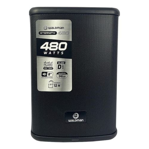 A eternity 480 et-480 com bateria da marca waldman é uma caixa de som ativa com amplificador classe d, 120w de potência rms, 480w de pico e alto falante de 8 polegadas que foi desenvolvida para ser utilizada em diversas aplicações como: palestras, eventos ao vivo, lojas, bares, festas, entre diversas ocasiões.