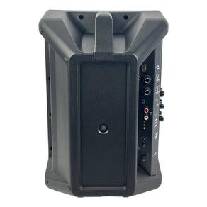 A caixa também conta com indicadores de led para status da bateria e duas entradas auxiliares, sendo uma p2 e uma rca. Além disso, a caixa possui mp3 player com display digital, porta usb e mini sd card, conectividade bluetooth para escutar as suas músicas preferidas através de dispositivo móvel, e botão eq para selecionar entre: normal, jazz, pop ou clássico.