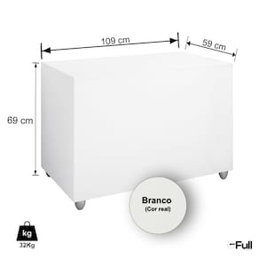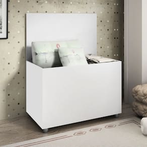 Fabricada em MDP de 15 mm, a caixa baú é resistente e projetada para suportar o uso diário, garantindo sua durabilidade ao longo do tempo.