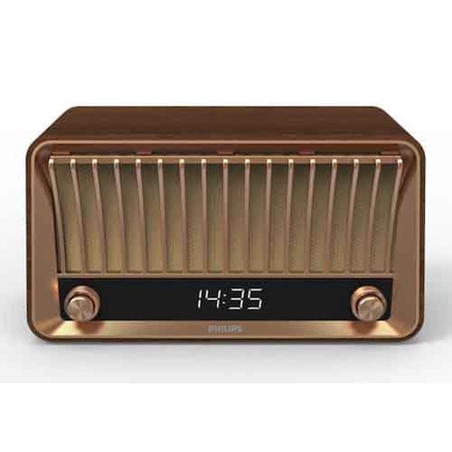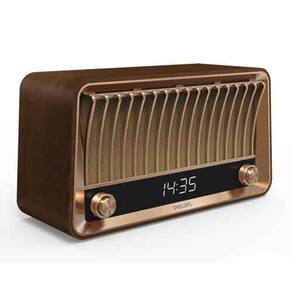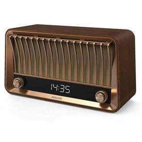 Com design vintage, ouça suas músicas através do bluetooth e rádio FM. Não perca a hora com o relógio digital e sua caixa de som possui saída USB para carregar seus aparelhos móveis.