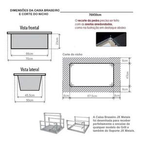 Caixa Braseiro de Embutir para Churrasqueira 70X50 Aço Inox Jx Metais