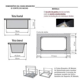 Caixa Braseiro de Embutir para Churrasqueira 80X50 Aço Inox Jx Metais