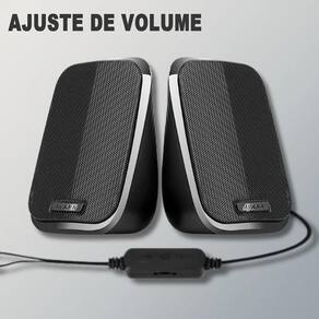 Especificações - comprimento do cabo: 1 metro - saída total: rms 5w - relação: s/n: 65db isolado - sensibilidade 70db + 4db - recomendado para pc, mp3, mp4, notebook, etc... - timbre suave e claro - amplificador ativo integrado - qualidade de som pura e elegante com efeito insuperável - impedância: 4 ohms - potência: usb 5v - alimentação de energia via usb Marca: Não Informado
