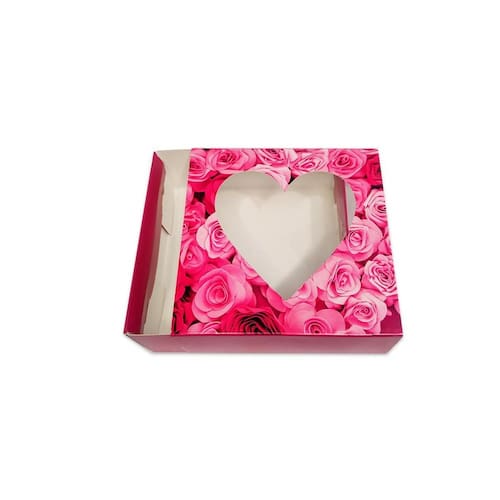 Caixa Chocolate Gaveta Com Visor Transparente Coração Flores