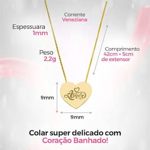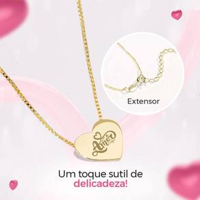 - Pingente Banhado - Formato: Coração - Detalhe: Gravado a laser com a palavra Amor de alta precisão