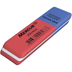 parte azul: é indicada para remoção de tinta de caneta e lápis de cor. É uma borracha mais abrasiva, que possui cris ais pontiagudos em sua composição, o que faz com que seja possível desgastar lixar a folha até a remoção parcial ou total da tinta, ou seja, a borracha não apaga a tinta do papel, mas desgasta a ponto de conseguir removê-la.