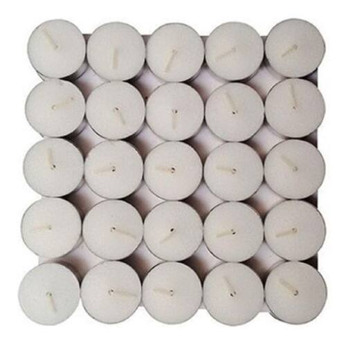 Caixa Com 50 Velas Tipo Rechaud Com Base De Alumínio Kit com 50 velas, tipo rechaud, feitas em parafina e armazenadas em suporte de alumínio para decoração de taças, vidros, casamentos, festas, aquecer comida e diversas outras finalidades