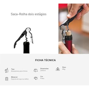 Caixa em papelão revestido 1 corta-gotas para vinho com tampa 1 saca-rolha dois estágios 1 salva-gotas anel 1 tampa para vinho