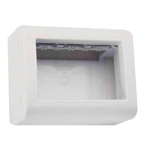 Possuem janelas destacáveis para embutir canaletas, nas dimensões de 20x10 mm e 40x20 mm, e, na caixa para 3 módulos, também é possível embutir canaletas nas dimensões de 50x20 mm