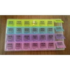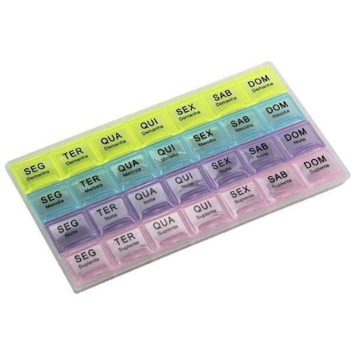 Caixa Comprimido Porta Medicamento Semanal 4X Dia Remédio Nunca mais esqueça quando e quais remédios tomar com este prático porta remédios que possui 28 compartimentos para guardar comprimidos e pílulas diariamente ;)