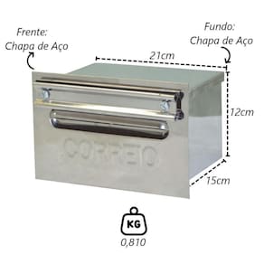 01 Caixa Correio Cartas Envelope Inox Para Grade 15x21x12cm.