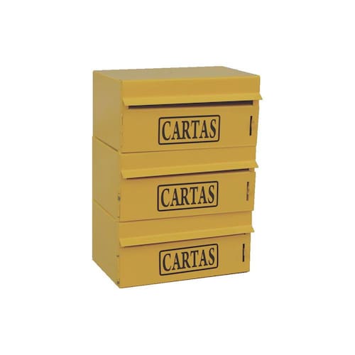 Caixa Correio Condomínio Frontal Para Muro Amarela 3 Módulos