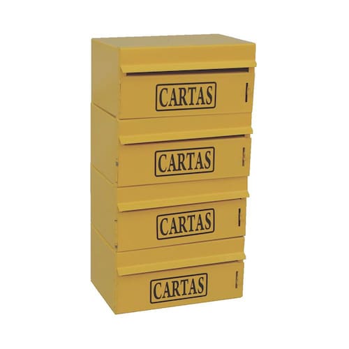 Caixa Correio Condomínio Frontal Para Muro Amarela 4 Módulos