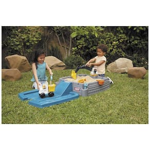 TEMA DE CONSTRUÇÃO LEGAL Caixa de areia com tema de construção para horas de diversão RAMPA DE CAMINHÃO A tampa funciona como uma rampa de caminhão. SCOOP, DIG DUMP A escavadeira realmente funciona para colher, cavar e despejar areia. SUPER ACESSÓRIOS DE AREIA Inclui 6 acessórios de areia mais um Dirt Digger TM exclusivo para brinquedos suficientes para todos. CONTEM UMA TONELADA DE AREIA Suporta até 100 lbs. de areia não incluído Idades 3 anos Marca: Não Informado