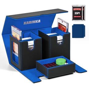 \ Especificações: Material: couro PU Dimensões: 22,4 x 12,5 x 10,9 cm. Cor: preto e azul. Peso: 0,73 kg A embalagem inclui: 1 caixa de armazenamento de cartões colecionáveis 2 porta-cartões magnéticos. 2 divisórias de cartão. Observações: Medição manual, considere pequenos erros no tamanho. A cor pode haver uma pequena diferença devido a diferentes exibições de tela. Se você não estiver satisfeito com sua compra, imediatamente e ouviremos suas preocupações e nossa equipe de atendimento ao cliente encontrará a melhor solução para a situação. - Design inovador: Kabinka caixa de baralho 3 em 1 tem 2 caixas individuais com janela, você pode usar 2 blocos de cartão magnético incluídos para exibir orgulhosamente suas cartas de comandante favoritas; e 1 caixa de dados com capa removível para pequenos acessórios relacionados a jogos - Excelente capacidade: esta caixa de baralho de comandante para mtg funciona com cartas sem mangas, cartas de manga única, cartas de manga dupla, toploaders; cada capa individual cabe facilmente em 100 baralhos de manga dupla; a bandeja de dados projetada para dados, fichas, contadores - Inclusão: a caixa de armazenamento de cartões inclui 2 divisórias que ajudam você a classificar seus cartões de forma mais eficaz; equipado com 2 porta-cartões de 35PT oferece uma proteção extra, prolongando a vida útil do seu cartão e preservando o brilho da cor por muito tempo mantendo - Qualidade premium: magnetismo forte mantém a tampa fechada durante o transporte, ótimo para manter os decks seguros e organizados; o interior é feito com fibra macia para proteger os cartões de arranhões e arranhões; o exterior é feito de couro PU à prova d'água - Boa escolha para colecionadores de cartas: a caixa de armazenamento Kabinka para cartões colecionáveis é a escolha ideal para jogadores, adequada para capas Dragon Shield, cartão de jogo, cartão de beisebol, cartões esportivos etc. Desfrute de jogos de cartas com seus amigos ou familiares com esta caixa de cartão exclusiva