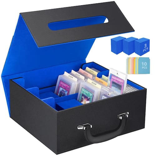 - Coleção de cartas de jogo com alça: a caixa de cartas colecionáveis vem com uma alça conveniente, tornando-a incrivelmente fácil de transportar quando você está fora ou viajando. Isso permite que você mostre que sua coleção é adequada para MTG, TCG, Pokémon e YuGiOh! cartões ou cartões esportivos especiais em qualquer lugar. Portanto, você pode desfrutar do prazer de compartilhar sua paixão pela coleta de cartas com outras pessoas e aprimorar sua experiência social.