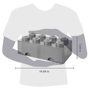 Gaveta de tijolos LEGO, 8 maçanetas, 2 gavetas, caixa de armazenamento empilhável, cinza de pedra média