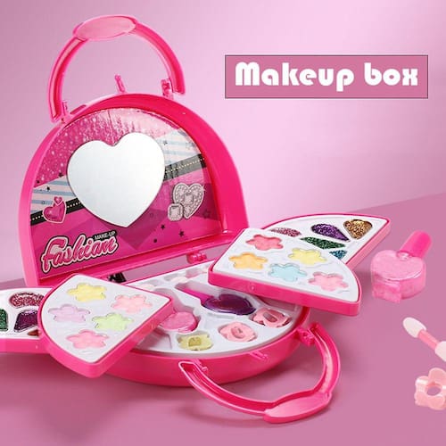 Caixa de brinquedos de maquiagem Conjunto de brinquedos de maquiagem infantil Mala aberta CARACTERÍSTICAS: Você está pronto para a festa chique - Maquiagem real para as princesas na festa de máscaras Você ficará surpreso com a autenticidade deste conjunto completo de maquiagem. Inclui tudo o que você precisa para completar sua maquiagem - sombra para os olhos, batom, blush, unhas e esmalte para realçar o brilho de suas meninas e fazê-la pensar, Oh, tão linda. Não tóxico, lavável - Não se preocupe, mãe/vovó Sua rainha da beleza é completamente imune a erupções cutâneas e irritações. E tudo é super fácil de lavar Brinquedos resistentes - Não se preocupe com escovas quebradas e caixas que não abrem. Somos obcecados pela qualidade para oferecer a você um conjunto de brinquedos atemporal. Conteúdo da embalagem: 1 peça x estojo