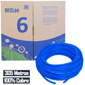 Descrição: Os cabos CATEGORIA Cat6 permitem uma transmissão de dados de alta qualidade e desempenho, tudo por conta da expessura de cada fio e o isolamento interno que proteje os cabos de interferências externas e internas entre si. Aumentando a sua capacidade de transmissão e tornando perfeito para o uso em rede de computadores, games, smarttvs e outros dispositivos.Os cabos CAT6 são altamente recomendados para conexões de internet.Substitua sua coneção WI-Fi por cabos de rede utp e sinta a diferença. Ficha Técnica:- Categoria CAT 6- 100% COBRE 23AWG- GigaLan 10/1000 Mbs - Marca: WEC - Utp 4p Itens inclusos:1x - Caixa com 350 Metros de Cabo de Rede Cat6 Utp 4p 100% Cobre WEC Azul;