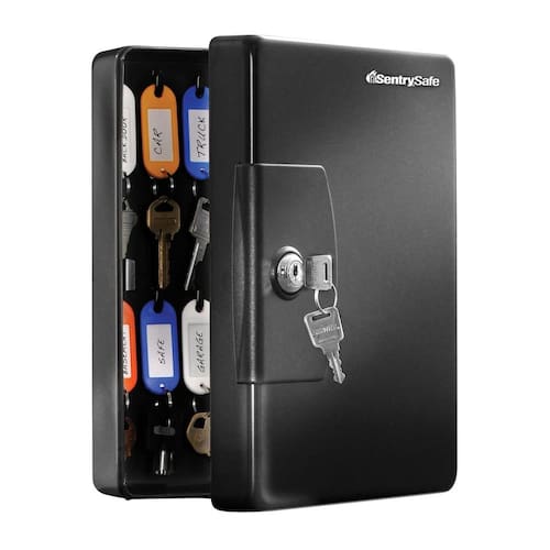 Caixa de chaves SentrySafe, pequena caixa preta com chave, porta-chaves trancada, suporte de parede para acesso seguro e fácil a várias chaves, 0,06 pés cúbicos, KB-25