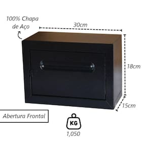 Caixa de Correio Cartas Condomínio Frontal Preta 15x30x18cm