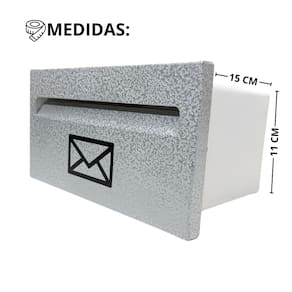 Frente de Aço Galvanizado • Largura da Frente: 24cm • Altura: 12,5cm • Tamanho da Entrada das Cartas: 20,5cm Box de Cartas – Polipropileno (plástico) • Largura do Box: 21cm • Altura do Box: 11cm • Profundidade do Box: 15cm