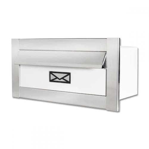 Caixa De Correio Carta Frente Em Inox Polido Brilhante Espelhado Com Tarja Branca