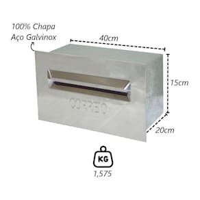 Caixa de Correio Para Cartas Galvinox Revista 20x40x15cm A caixa de correio é usada para receber correspondências como cartas, contas e revistas, sendo colocada em frente a residências e empresas para garantir a entrega segura das correspondências. Sua função principal é oferecer um local seguro e conveniente para receber correspondências, protegendo-as do clima e de acesso não autorizado. Existem diversos tipos de caixas de correio, desde as individuais até as maiores para prédios, facilitando a distribuição das correspondências aos destinatários. Indicação de Uso: A caixa de correio é usada em residências, apartamentos, estabelecimentos comerciais, escritórios e instituições públicas para receber correspondências como cartas, pacotes e documentos. Ela serve como um local seguro e conveniente para coletar e armazenar temporariamente essas correspondências até que sejam retiradas pelo destinatário. Especificações Técnicas:Material Fundo: Chapa de Aço Galvinox.Material Frente: Chapa de Aço Galvinox.Importante: Não entra água.Cor: Prata Galvinox.Abertura Detrás. Medidas:Largura: 40cm.Peso: 1,575Kg.Altura: 15cm.Fundo: 20cm. Itens Inclusos:01 Caixa de Correio Para Cartas Galvinox Revista 20x40x15cm. Código: 1847MTMProdutoLojaPlast. Marca: Metal Mig