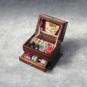 Tamanho: altura total de cerca de 2,2 cm, comprimento de cerca de 3,4 cm, largura de 2,3 cm; material: madeira, metal, plástico Peso: 7 g Conjunto de caixas de costura em miniatura: apresenta uma caixa de costura de madeira detalhada com bobinas de linha coloridas, uma tesoura e outros pequenos acessórios de costura, projetados para casas de bonecas em escala 1:12. Design de estilo vintage: replica perfeitamente uma caixa de costura clássica e antiquada, adicionando charme e autenticidade à sua casa de bonecas ou coleção em miniatura. Brincadeira de fingir para crianças: incentiva brincadeiras criativas para crianças pequenas, proporcionando um excelente complemento para suas casas de bonecas e conjuntos de brinquedos em miniatura. Perfeito para entusiastas de casas de bonecas: um acessório indispensável para colecionadores de móveis e acessórios em miniatura, ideal para exibir ou brincar em uma casa em escala 1:12. Não é um brinquedo para crianças pequenas: este produto é um modelo em miniatura destinado a colecionadores e crianças acima de 3 anos. Mantenha-se afastado de crianças pequenas para evitar qualquer risco de asfixia.