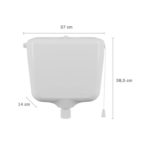A Caixa Elevada é um sistema de descarga com volume regulável, de 6,8 a 9 litros. A regulagem interna permite uma descarga controlada por meio do acionamento com cordinha, que pode ser interrompido pelo usuário a qualquer momento, conforme a necessidade de limpeza da louça. Além disso, a peça é única e não apresenta conexões, dando ao produto uma durabilidade alta.