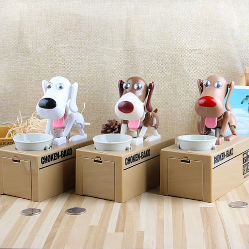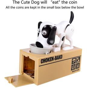 Característica: 100% novo, de alta qualidade Fácil de instalar. Um presente perfeito para economizar dinheiro para as crianças. Seu filho vai olhar para ele porque ele é muito engraçado. Ótimo presente para qualquer criança – eles vão se apaixonar facilmente por este pequeno banco de cachorro É uma ótima alternativa ao cofrinho clássico. Este gato realista também fará com que você volte moeda após moeda, fazendo você coletar dinheiro rapidamente. Também pode ser utilizado para enfeitar sua casa, mesa, mesa ou quarto de criança. A caixa de poupança é feita de material ABS. É bom, especialmente a parte da borda. É projetado para ser curvado para evitar arranhões de crianças. A cauda e as orelhas do filhote giram quando eles trabalham. Eles vão balançar a cabeça e ficar muito fofos no processo de comer dinheiro. Instale a bateria, ligue o interruptor e coloque uma moeda. Ele pode torcer até que desapareça, assim como comer uma moeda. Especificações: Material: ABS + componentes eletrônicos. Peso: 365 g Use 2 pilhas AA (não incluídas). Tamanho: 6 x 3,4 x 7 polegadas / 15,5 x 8,6 x 18 cm Conteúdo da embalagem: 1 cofrinho automático para guardar dinheiro, cofrinho de moedas, presente - Cofrinho: a cauda e as orelhas do filhote giram quando funcionam. My Dog Piggy Bank vai balançar a cabeça e ficar muito fofo no processo de comer dinheiro. - My Dog Piggy Bank: Filhotes mecânicos roubam suas moedas para ajudar você a economizar, um dos cofrinhos mais adoráveis do mundo. - Caixa de dinheiro de brinquedo robotizadora de moedas: você não pode deixar de rir deste doce cachorrinho "engolinando" o dinheiro. Além disso, ensinará as crianças a economizar dinheiro. - Diversão para todas as idades – é uma ótima alternativa ao cofrinho clássico. Este cão realista também fará você voltar moeda após moeda, fazendo você coletar dinheiro rapidamente. O banco de dinheiro para crianças também pode ser utilizado para enfeitar sua casa, mesa, mesa ou quarto de criança. - Fácil de usar: basta 2 pilhas AA (pilhas não incluídas) funcionam perfeitamente, e o cofrinho fofo é fácil de remover as moedas na parte inferior para que você possa fazer tudo de novo.