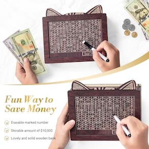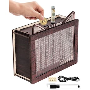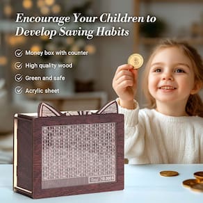 -?Caixa de poupança 10000 Challenge?: Esta caixa de madeira para economizar dinheiro possui uma ferramenta de contagem embutida para acompanhar os depósitos, facilitando o aprendizado das crianças a economizar dinheiro! É um presente ideal para crianças e amigos como um brinquedo de cofrinho. Ótimo para economizar dinheiro juntos para a família, filhos ou casais e, em seguida, realizar esses desejos.