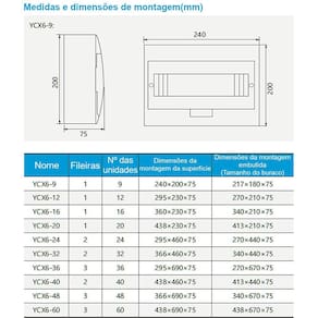 Caixa de embutir termoplástica 16 disjuntores modelo ycx6-16 A eng automação é uma empresa que oferece soluções para automação, elétrica, hidráulica e pneumática. Buscamos soluções simples e práticas para nossos clientes. Fornecemos produtos para aplicações de projetos simples diy , projetos de teste e até mesmo para projetos de alta performance, pois temos uma alta diversidade de produtos de variadas marcas e variados tipos de aplicação. Somos comprometidos a oferecer artigos que supram as necessidades de nossos parceiros sempre com o melhor custo-benefício. Conte conosco para concretizar seus projetos com qualidade e eficácia Especificações: - dimensões: 37 x 23,5 x 12mm - peso: 1,8 kg - prova de água - grau de proteção: ip66 Funções: -evitar sobrecargas e curtos circuitos nesses equipamentos, pois atuam na tentativa de impedir que sejam inativados ou invalidados por grandes correntes Todas as dúvidas podem ser auxiliadas pós-venda. Temos técnico disponível para auxiliar e ajudar com dúvidas técnicas ou de instalações. Marca: Não Informado