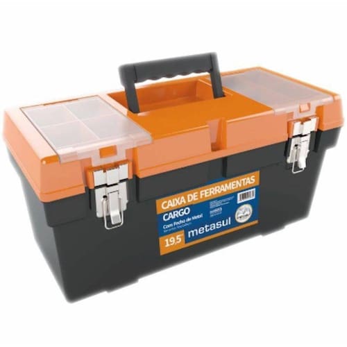 Caixa de Ferramentas Cargo 19,5 Fecho de Metal Metasul Caixa de Ferramentas Cargo 19,5 Fecho de Metal Marca Metasul para facilitar a organização e o transporte de ferramentas.