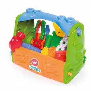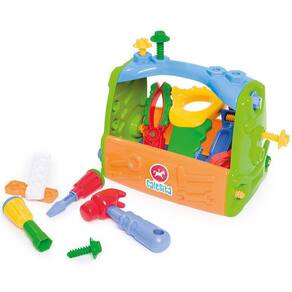 Caixa de Ferramentas - Calesita Linda caixa de Ferramentas, os utensílios são seguros, e muito parecidos com os de verdade. Contém martelo, alicate, chave de fenda e outras ferramentas para brincar Invente mil brincadeiras A criança poderá brincar sozinha ou com os amiguinhos. As cores do produto podem variar de acordo com o estoque do produto.