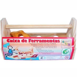 Linda Caixa de Ferramentas em madeira, as ferramentas são seguras, e muito parecidas com a de verdade. Contém: 01 caixa, 01 serrote, 01 martelo, 01 alicate, 01 esquadro de noventa graus, 01 chave de fenda e 01 chave de boca. A criança poderá brincar sozinha ou com os amiguinhos.