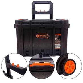 A caixa de ferramentas modular com rodas 583,0003 - Tactix é uma solução prática e versátil para o transporte e armazenamento de ferramentas. É indicada para carregar ferramentas em atividades diversas.