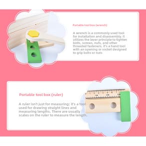 Especificação Material: pinho neozelandês, madeira de hevea Cor: cor mista Tamanho do pacote: 30x8x20,3 cm Peso da embalagem: 1,2 kg Lista de embalagem: 1 x brinquedo educativo Esta caixa de ferramentas de madeira para crianças incentiva as crianças a se envolverem em brincadeiras práticas enquanto aprendem habilidades básicas de ferramentas. O conjunto inclui uma chave de fenda e porcas para montagem, ajudando a melhorar as habilidades motoras finas e a coordenação olho-mão. Feito de madeira de pinho e hevea da Nova Zelândia de alta qualidade, este conjunto de ferramentas é durável e ecológico, garantindo que seja seguro para crianças pequenas. O design de cores misturadas adiciona apelo visual, tornando-o atraente para as crianças brincarem e aprenderem. O design do baú de ferramentas de porta dupla é perfeito para brincadeiras interativas, permitindo que as crianças abram e fechem as portas enquanto praticam suas habilidades de resolução de problemas. Também promove brincadeiras imaginativas, pois as crianças agem como pequenos artesãos ou mecânicos. Ideal para crianças pequenas e pré-escolares, esta caixa de ferramentas ajuda as crianças a aprenderem sobre ferramentas e habilidades básicas de construção. Ele oferece horas de brincadeiras educacionais e, ao mesmo tempo, promove a criatividade e a independência enquanto as crianças usam as ferramentas para montar objetos diferentes. Pesando apenas 1,4 kg e dimensões compactas (30x8x20,3 cm), esta caixa de ferramentas é fácil de armazenar e transportar. É um brinquedo ideal para ambientes domésticos e de sala de aula, promovendo o aprendizado brincando e sendo portátil para entretenimento em qualquer lugar.