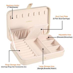 Nome: Landici Caixa de joias feminina organizador de joias para brincos, pulseiras, colares e anéis Cor: preto, azul escuro, verde, roxo, branco, rosa, cinza, lavanda, verde escuro, verde azulado, damasco, amarelo Amplamente utilizado: bem organizado, esta caixa de joias é ótima para uso pessoal, exibição de loja e decoração de casa. Será um presente ideal para aniversário, dia dos namorados, casamento, Natal e ano novo. - Classifique e organize as joias – a caixa de joias é pequena em tamanho e grande em capacidade, 21 cm (C) x 14 cm (L) x 4,3 cm (A). 7 ganchos para colar e 1 bolsa organizadora (para evitar que os colares fiquem emaranhados no compartimento superior), 7 compartimentos de anéis para vários anéis, 1 cartão de brinco, compartimento oculto embaixo para pulseiras, pulseiras, etc., e 3 pequenos compartimentos no lado direito com divisória removível Para todos os tipos de joias. - Proteção de dentro para fora – Forrado com forro de veludo macio e camada externa de couro sintético de poliuretano macio para durabilidade, o design avançado de fecho de pressão faz com que feche com segurança e fácil de abrir e fechar, o que protege suas joias de arranhões e perdas e não desbota ou deforma. - Organizador simples e minimalista – é pequeno, mas perfeito para suas necessidades, é a decoração da sala de estar, caixa de joias que economiza espaço. Para suas abotoaduras, colares, pulseiras, brincos, broches e quaisquer outras joias e itens, manterá todas as suas joias organizadas sem ocupar muito espaço na sua cômoda. - Capa de joias para viagens – é leve e compacta o suficiente para caber em sua bagagem de mão ou bolsa, a camada externa é à prova d'água e a camada interna organiza suas joias contra arranhões, para que você possa viajar com todas as suas joias favoritas do dia a dia com facilidade! - Melhor presente para mulheres – perfeito para exibir beleza em todas as ocasiões. É portátil e pode caber facilmente em sua mala, achamos que é ideal para festa de casamento nupcial e escolha de presente ideal para vários festivais, como aniversários, Dia dos Namorados, Dia das Mães, Natal e Ano Novo!
