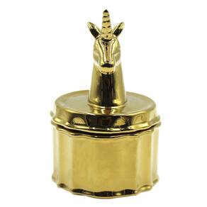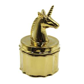 Caixa de joias mossty Gold Unicórnio em porcelana com tampa 13x13x13cm