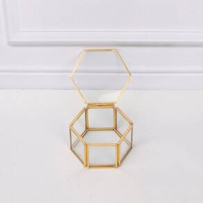 Características destacadas 1. Estilo moderno requintado: esta caixa de joias é uma vitrine de vidro hexagonal com uma aparência elegante e o estilo é muito moderno e requintado. 2. Prático:. Esta caixa de armazenamento pode armazenar suas joias favoritas, joias, anéis, brincos, colares, flores, etc. 3. Boa qualidade: a borda desta caixa de joias é feita de latão e é perfeitamente soldada com vidro transparente. A qualidade é muito boa. 4. Portabilidade: Este produto é pequeno e leve, o que é muito conveniente para transportar cerca de 5. Lindo: este produto é feito com artesanato funcional e requintado, e a aparência é muito elegante e bonita. Veja menos