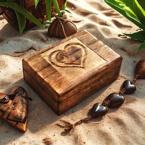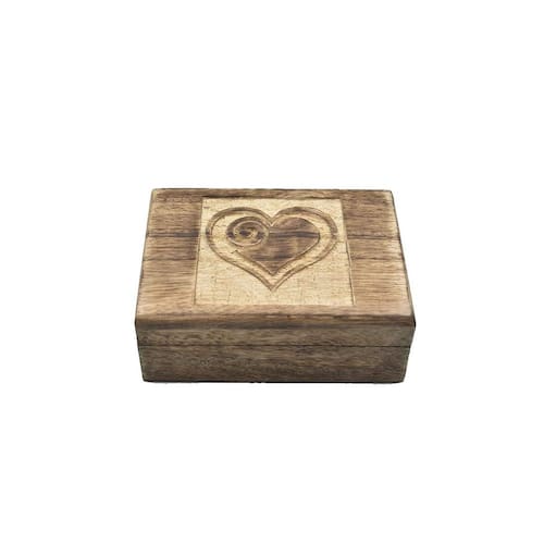 Caixa de joias STORE INDYA em madeira esculpida à mão com formato de coração